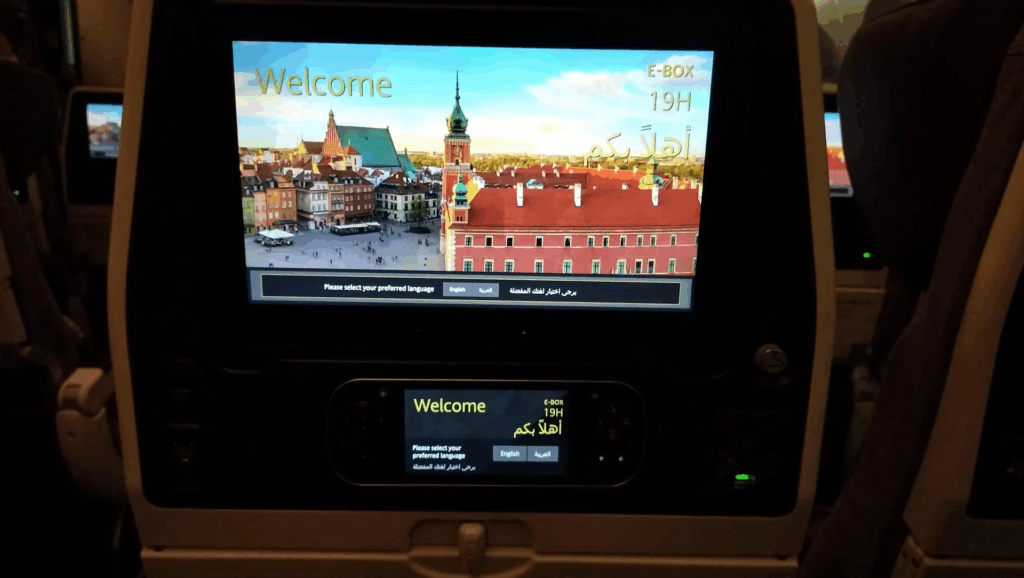 2025年10月、成田からワルシャワまでエティハド航空を利用。往復ともアブダビ経由。選んだのはエコノミーの中でも上位クラス「Economy Deluxe」で、40kgの受託手荷物が含まれていた。座席はエコノミーの中でも広めの座席(エコノミースペース)、いずれも足元に余裕があり、長距離でも快適だった。座席にはブランケット・ヘッドホン・ポーチ(エコバッグの中に、耳栓、アイマスクが入っている)が標準装備されており、エンタメ画面も大きく、映画や音楽も豊富。