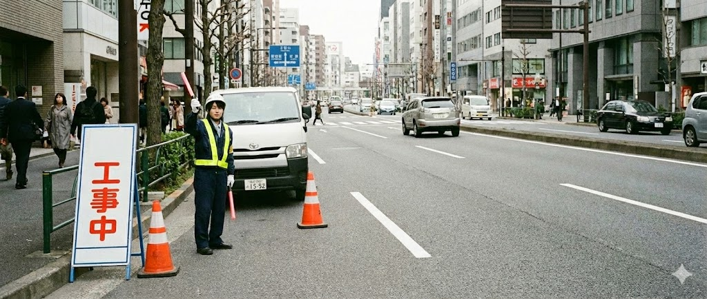 街を歩いていると、工事現場に交通誘導員が立っている光景をよく見る。
