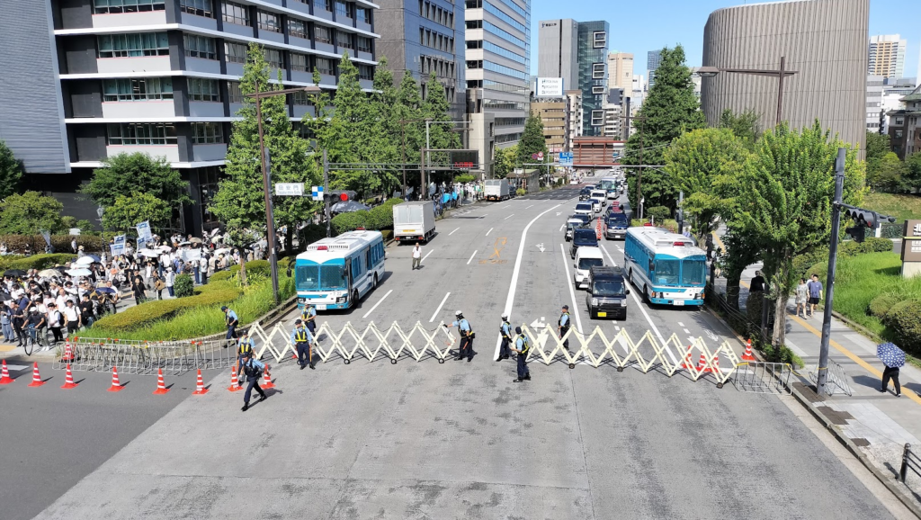 機動隊の複数中隊、特科車両隊、交通規制要員、情報担当の私服警察官が一帯を埋め尽くし、九段下から靖国通りにかけては都市封鎖に近い密度の警備が敷かれる。